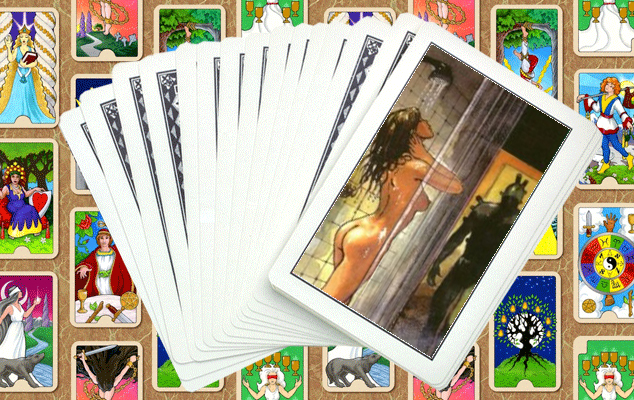 В сюжете карты два персонажа: девушка моется под душем, а возле двери стоит человек. Или не человек? В любом случае, фактор неожиданного вторжения и, соответственно, парализующего страха у девушки просто неизбежен.